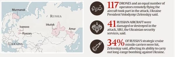 - The operation, resembling a spider web of control and communication stretching across Russia, was planned over 18 months, led by Ukraine’s Security Service of Ukraine (SBU) as a covert operation.