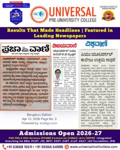 Universal Pre-University College, Bengaluru, has achieved a proud milestone by being featured in Vijaya Vani , Vishva Vani for its outstanding performance in the 2nd PUC Annual Examinations 2025–26. This recognition highlights the institution’s consistent academic excellence and strong reputation in pre-university education.