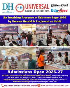 The Universal Group of Institutions (UGI) marked a strong and impactful presence at the Eduverse Expo 2026 held in Hubli, organized by Deccan Herald and Prajavani. The event brought together aspiring students, parents, and academic institutions on a single platform focused on career guidance and educational excellence.