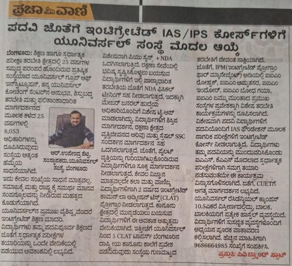 In today’s competitive academic landscape, early and strategic preparation is the key to success in civil services. Universal Coaching Centre (UCC), Bengaluru, has emerged as a leader in this domain by offering integrated programs that align school education with competitive exam preparation.